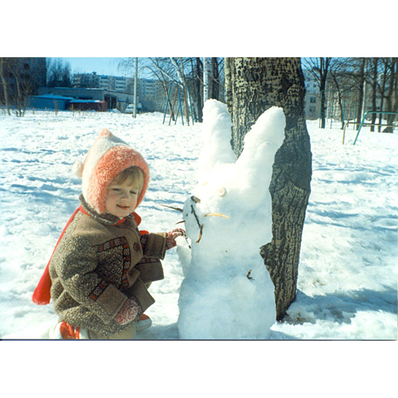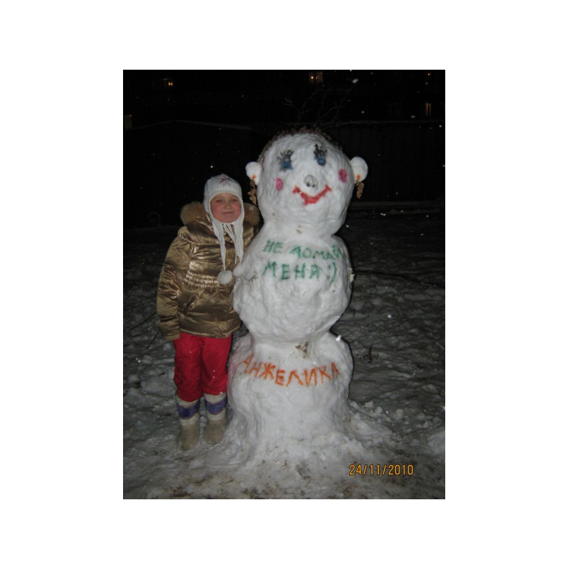 Шагина Анжелика, 8 лет. Сама слепила снеговика