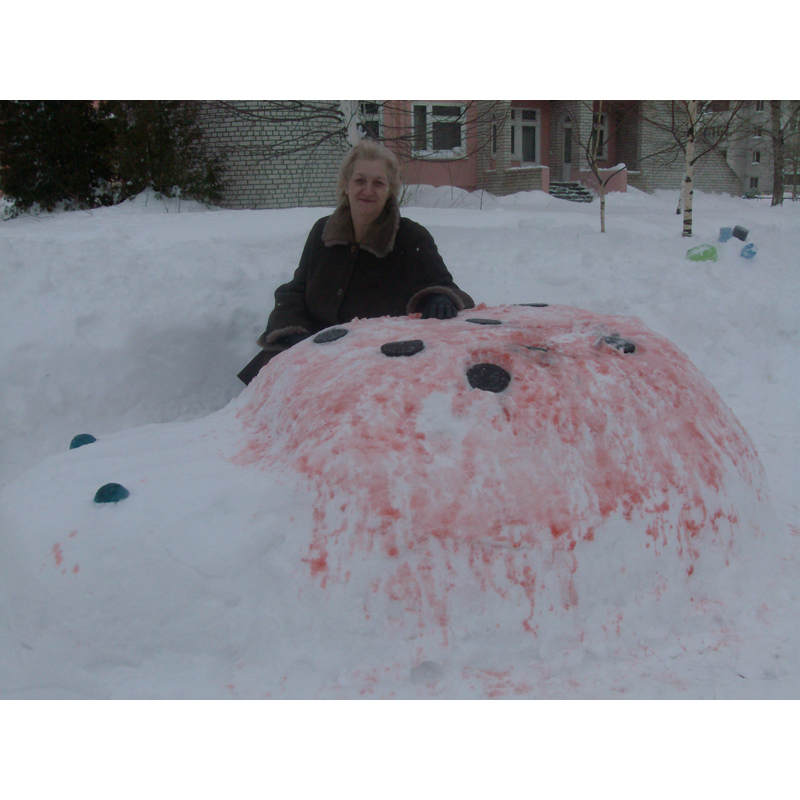 Снеговик Крош был создан учащимися 5А класса, средней школы 91
