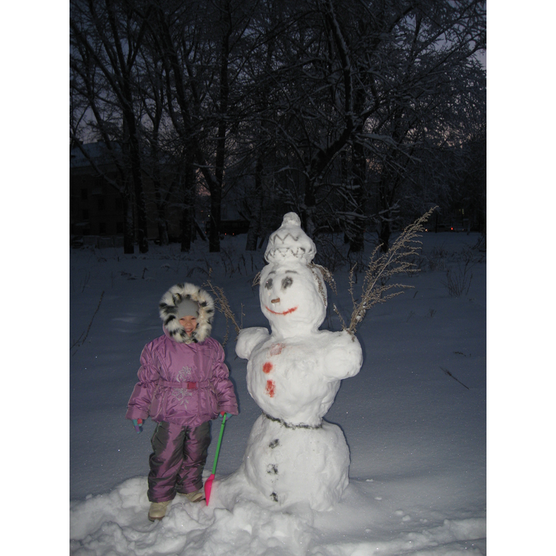 Шагина Анжелика, 8 лет. Сама слепила снеговика