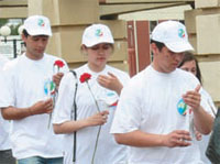Через несколько часов на площадке у парка начались официальные мероприятия с участием ветеранов и мэра Казани. После слов благодарности ветеранам, поминания павших минутой молчания Ильсур Метшин и все присутствующие возложили цветы к Вечному огню. Сразу после этого началась акция «Свеча памяти». Около 20 парней и девушек зажгли белые свечи и двинулись к парку Горького. Сложнее всего пришлось на мосту Миллениум – огоньки пришлось закрывать от ветра. Но в итоге все свечки были донесены до Вечного огня.