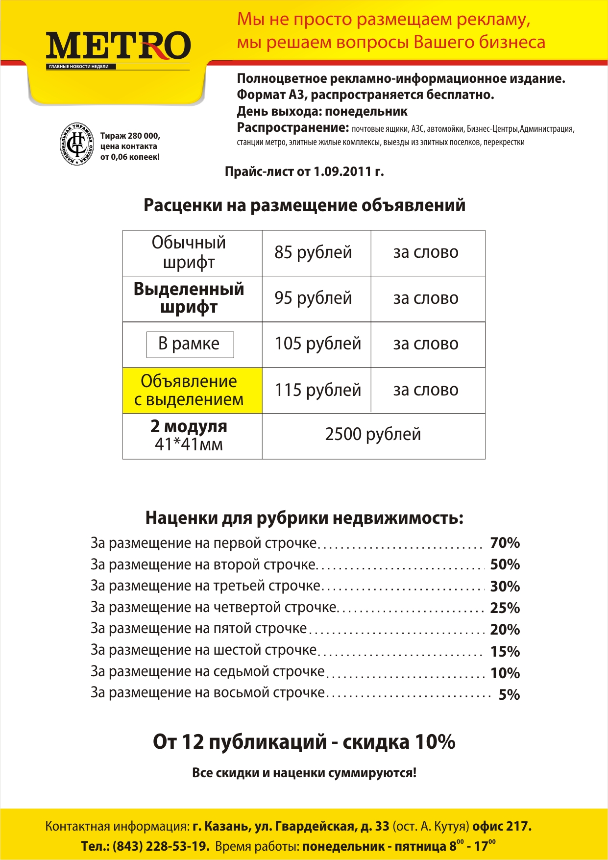 скачать прайс-лист размещения рекламы в газете